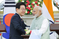 韓·印, 에너지·나프타 협력 강화 교역 2배로 늘리고 문화교류 확대 [전문]이재명 대통령 한-인도 공동언론발표문 이 대통령-모디 정상회담 1시간45분만에 종료…예정시간보다 35분 넘겨 이 대통령, 모디 총리와 '슬픔 없는 나무' 아소카나무 식수…평안한 양국 미래 기원 이 대통령 "호르무즈 해협 안전·자유 항행 위해 인도와 긴밀히 소통"