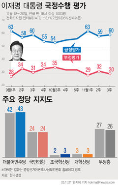 이재명 대통령 지지율 60%…민주 43% 국힘 24% (갤럽)