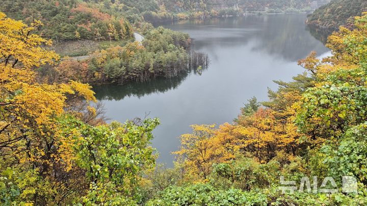 오색 단풍으로 물든 오봉저수지