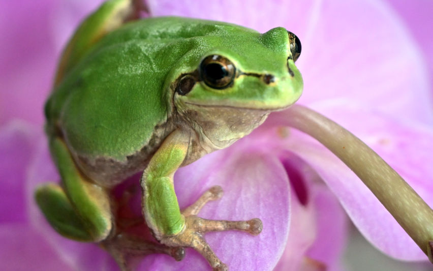 호접란 위 청개구리