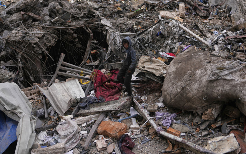 잔해 속 고철 수거하는 레바논 소년