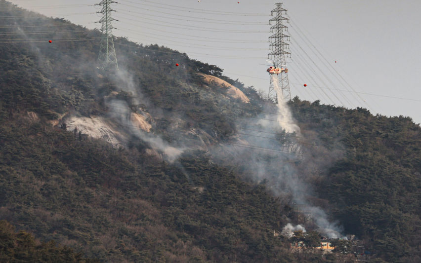 수락산 산불 진화하는 소방헬기