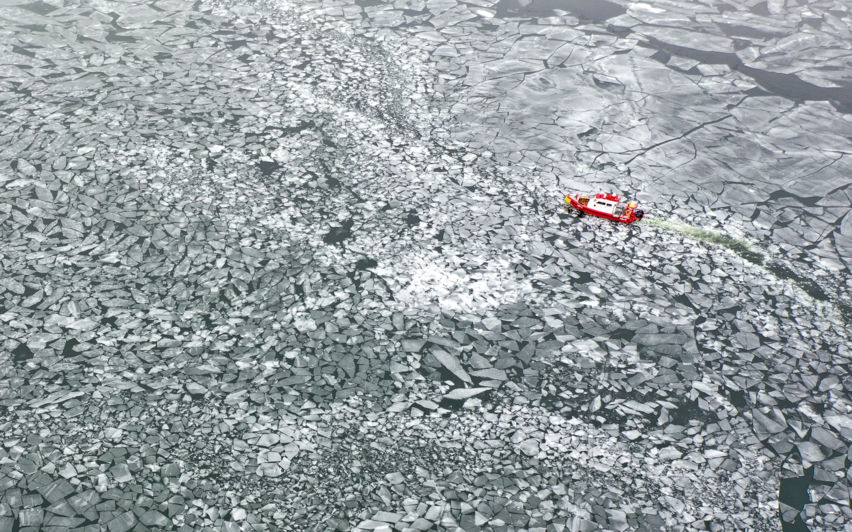 얼어붙은 한강 가르며