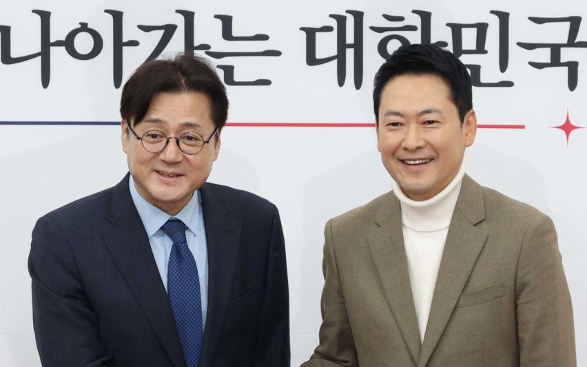 악수하는 장동혁-홍익표