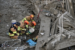 매몰 노동자, 철근 콘크리트 더미 속 하반신만…수색 총력(종합)