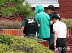 [안동=뉴시스] 송종욱 기자 = 태국 파타야에서 공범 2명과 함께 한국인 관광객을 납치 살해한 혐의를 받는 피의자 A(27)씨가 조사를 위해 경남 창원시 성산구 경남경찰청 형사기동대로 이동하고 있다. A씨는 이날 캄보디아 프놈펜에서 인천국제공항을 통해 국내로 강제 송환됐다. 캄보디아에서 붙잡힌 지 58일 만이다. (사진=뉴스1 제공) 2025.10.11.