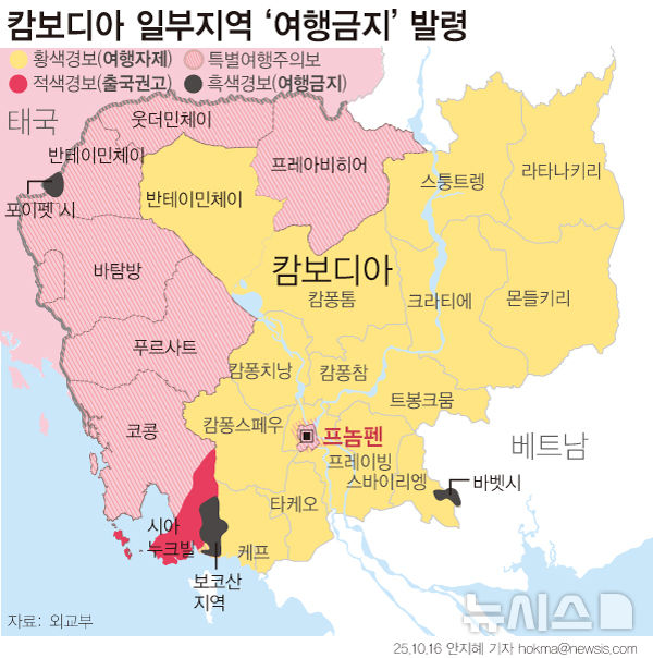 ![[인천공항=뉴시스] 홍효식 기자 = 정부합동대응팀 단장인 김진아 외교부 2차관과 박성주 경찰청 국가수사본부장이 15일 오후 인천국제공항 제2터미널에서 한국인 대상 취업사기·납치·감금 범죄가 빈번하게 발생하고 있는 캄보디아로 출국하고 있다. 유엔이 5개월 전 캄보디아 등 동남아시아 지역에서 활동하는 범죄 조직의 고문, 인신매매에 심각한 우려를 표했던 것으로 16일 확인됐다. 2025.10.16. yesphoto@newsis.com](https://img1.newsis.com/2025/10/15/NISI20251015_0021015844_web.jpg?rnd=20251015183526)