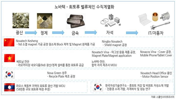 [서울=뉴시스] 김경택 기자 = 스몰인사이트리서치는 1일 노바텍에 대해 희토류 영구자석 수직계열화 구축 등에 따른 구조적 성장이 예상된다고 분석했다.